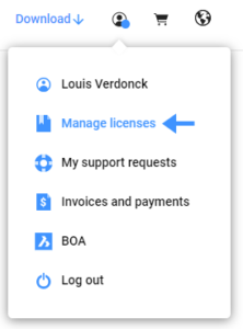 Klik op het pictogram ‘Mijn Account’ en selecteer ‘Beheer Licenties’ in het menu.