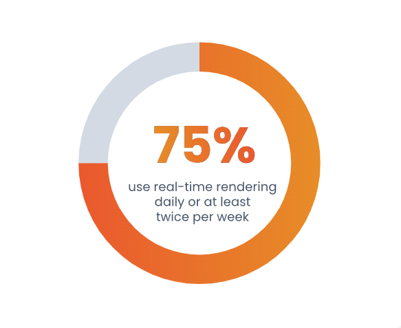 Meer dan 75% van de respondenten gaf aan dat ze dagelijks real-time rendering gebruiken, of op zijn minst twee keer per week. Deze cijfers bevestigen de wijdverbreide toepassing van real-time rendering in de dagelijkse werkzaamheden van veel architecten en geven aan dat de technologie goed is ingeburgerd in de branche.
