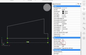 Als je wilt bematen in de model-ruimte van je tekening, kan het zijn dat pijlpunten en bematingsteksten veel te klein zijn. Maak dan een aangepaste bematingsstijl met het DIMSTYLE commando. Wil je het snel aanpassen, klik dan op je bemating of selecteer je bematingen en pas de overall scale aan in de Properties. Zie de rode cirkel in onderstaande figuur.