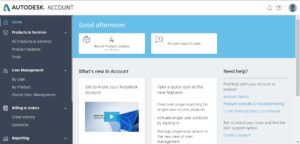 In je Autodesk account regel je alles met betrekking tot je licenties en het koppelen of ontkoppelen aan een user van de software.