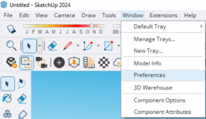 Open een lege tekening in SketchUp –> Window –> Preferences